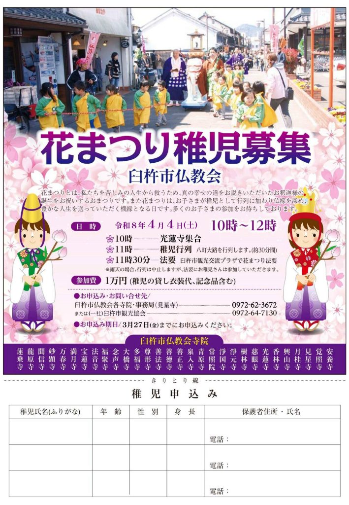 【花まつり】4/4(日)【稚児募集】