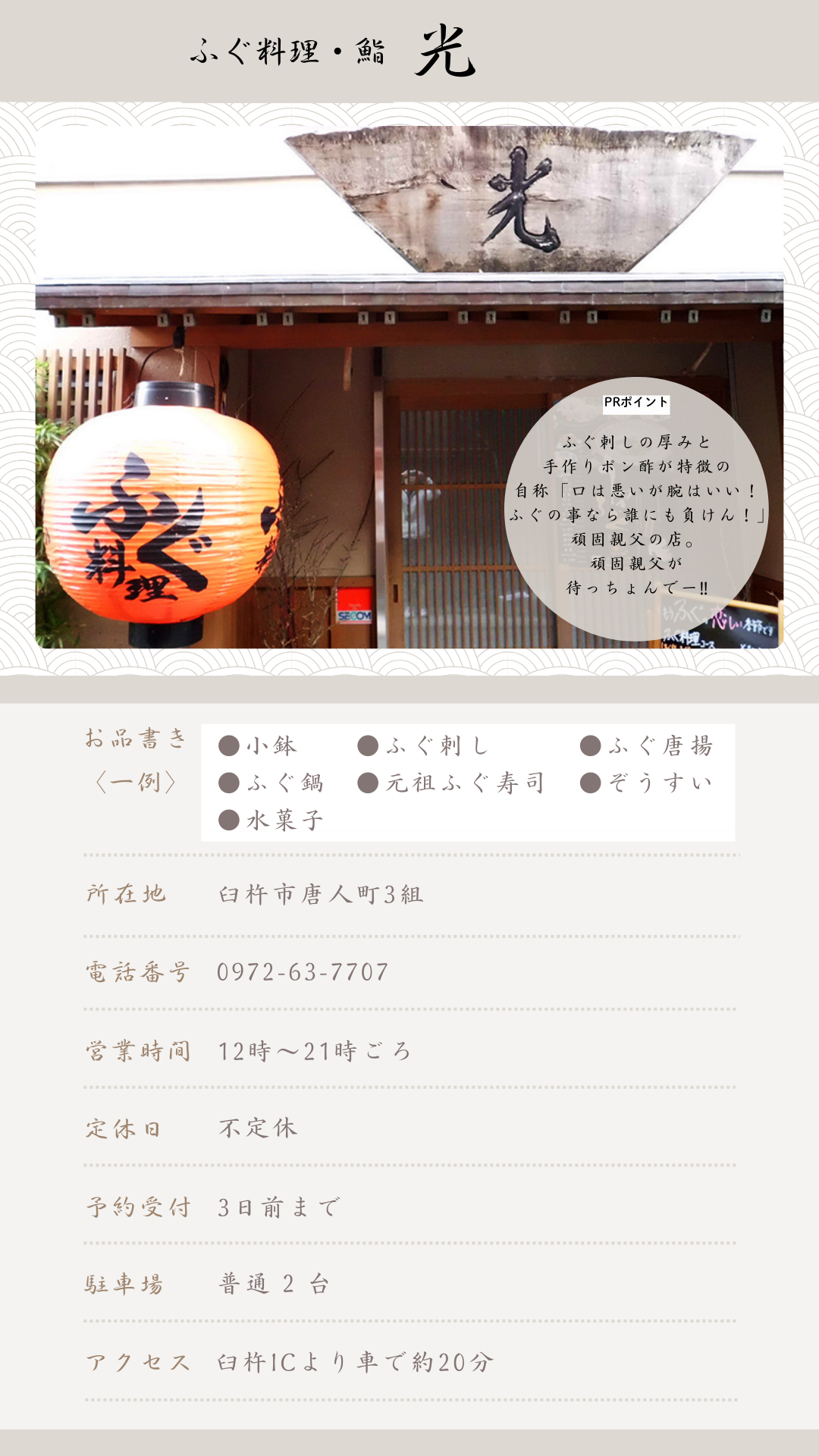 臼杵ふぐ名店「臼杵ふぐ料理フルコースお食事券」利用店舗一覧