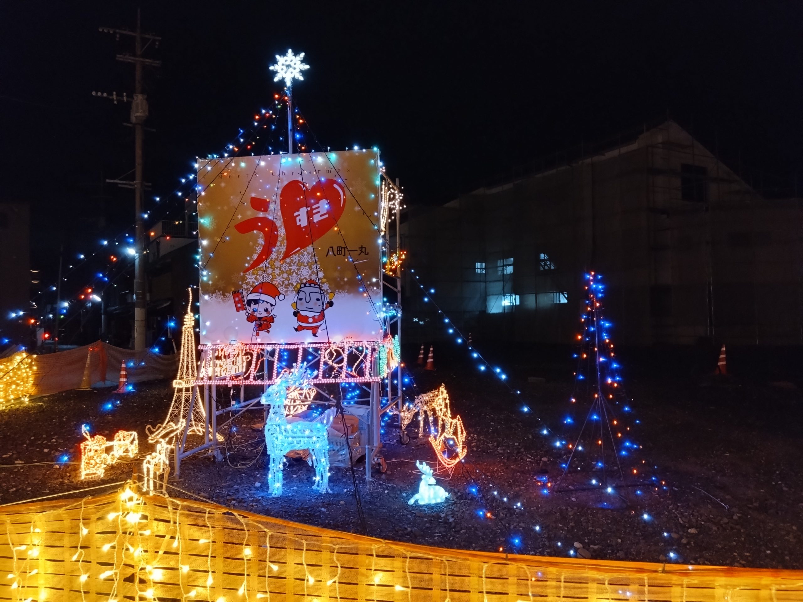 八町大路復興の広場にてイルミネーションが始まっています!ひとつひとつ灯る明かりが、八町大路の夜をあたたかく照らしています♪暖かい格好でぜひお越しください!