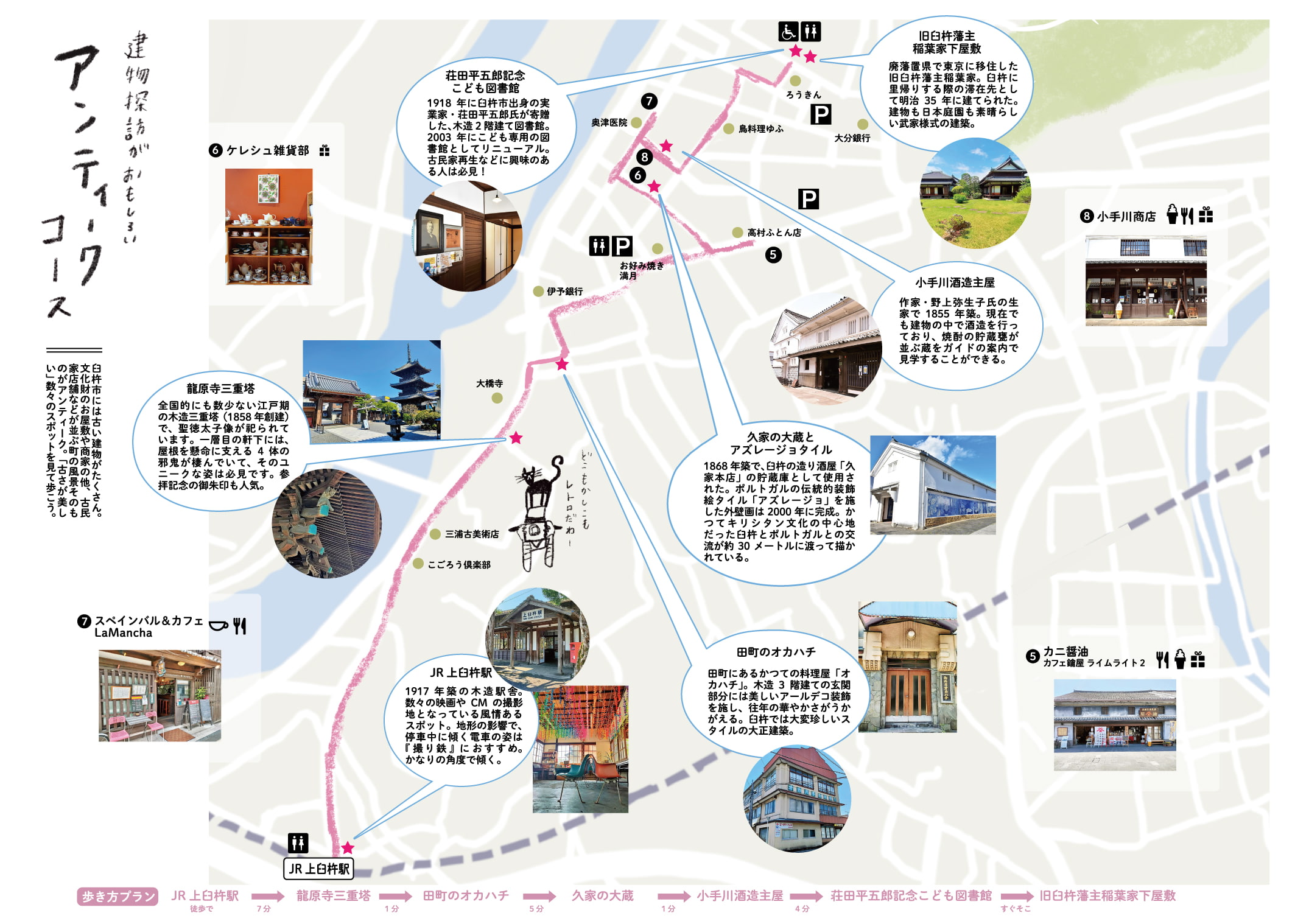 臼杵市には古い建物がたくさん。文化財のお屋敷や商家の他、古民家店舗などが並ぶ町の風景そのものがアンティーク。「古さが美しい」数々のスポットを見て歩こう。