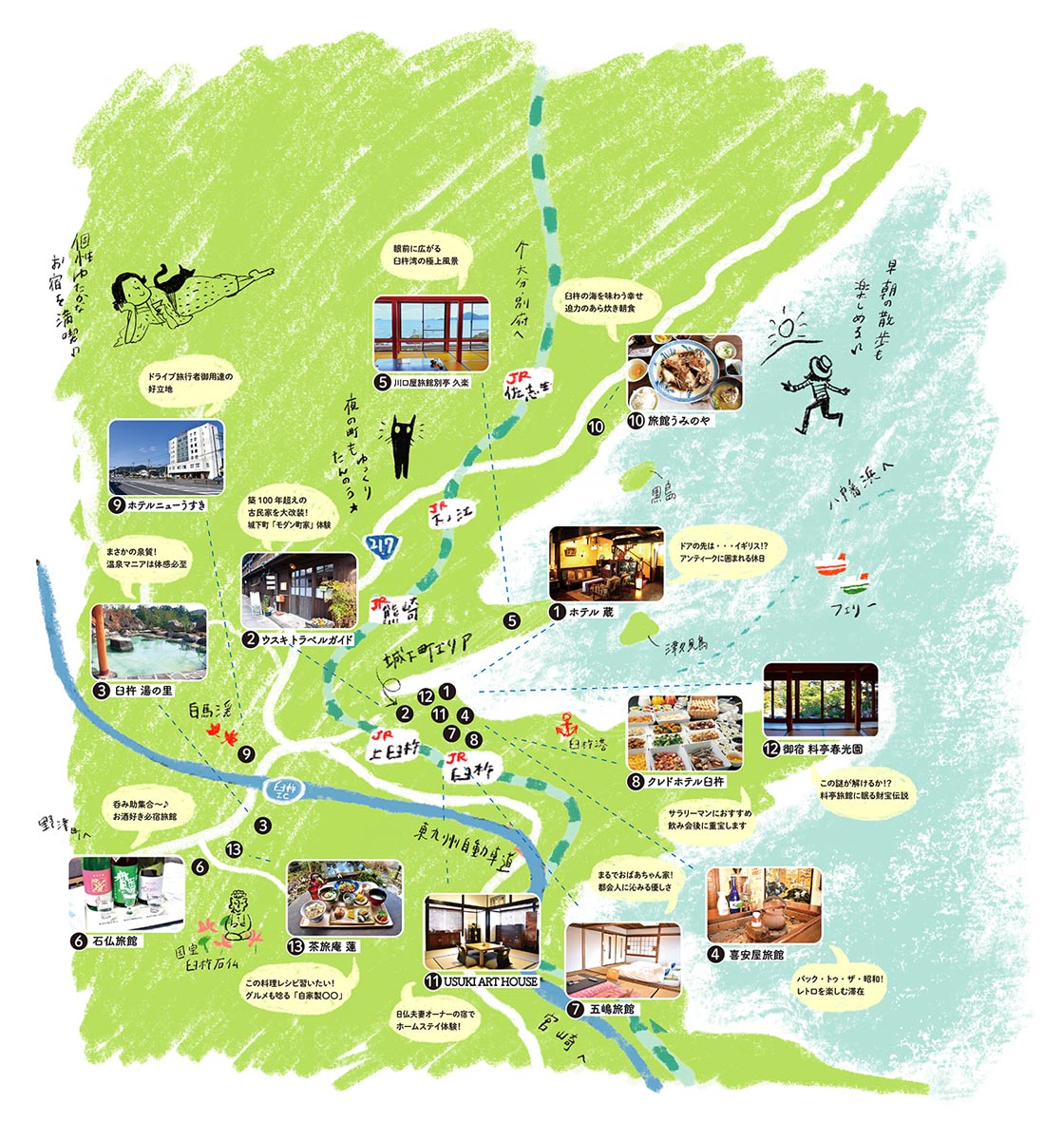泊まった人にだけ見えてくる臼杵の魅力を知るための厳選お宿をご紹介。あなたの直感に「ピン!」とくるお宿をみつけてあなただけのうすきとりっぷへ出かけよう!