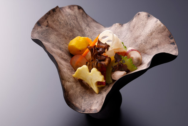臼杵の食文化を代表する二つの名店「料亭山田屋」と「うすき皿山」が思考を凝らし、臼杵の美しい旬を表現しました。
